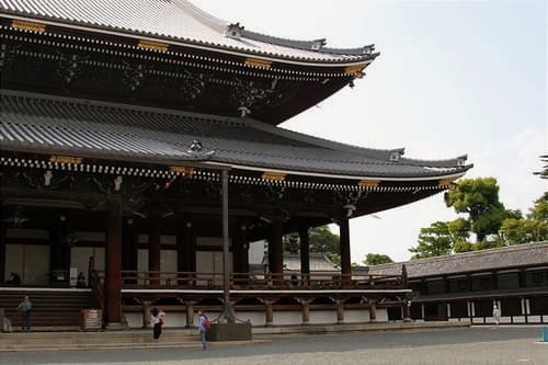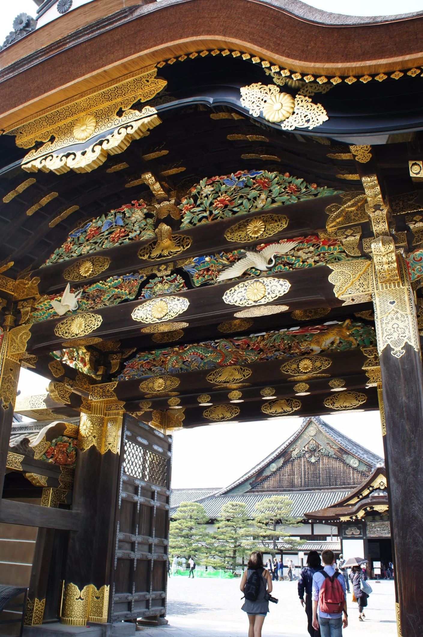 After that we stopped to have Soba for lunch in the area of the Kyoto Station and then continued walking to the Nijo-jo Castle. We also passed Higashihonganji-Temple which is a huge Temple and visited that one too. It is located in the middle of the city center where local people would stop by to have a short rest and pray during their working break or after work. When we finally arrived at the castle it was 4 pm which is actually the time when most temples and other attractions would close.