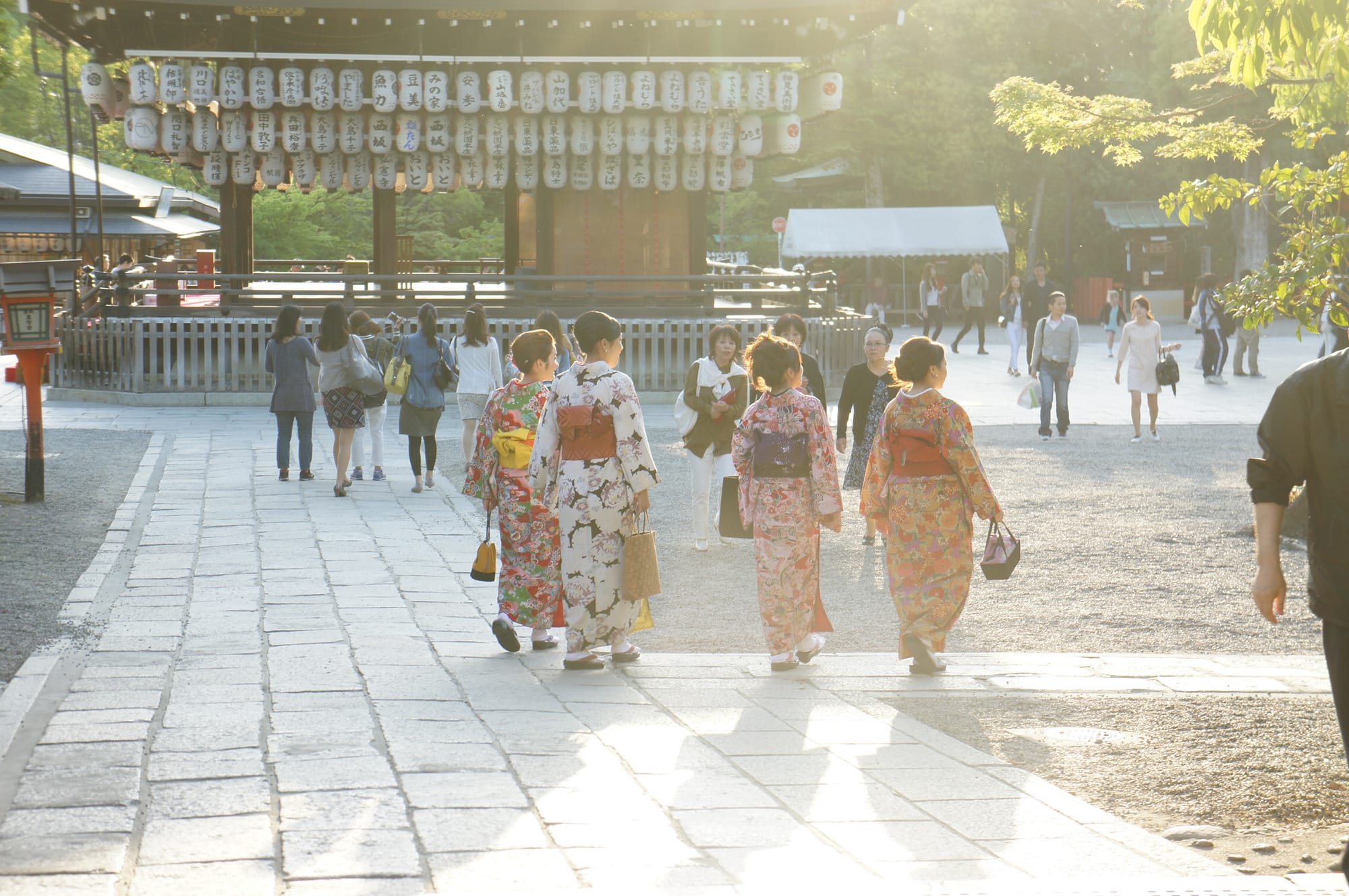 On our way back to the guesthouse we stopped by at the Yasaka Shrine near the Gion subway station at the early evening. We saw many families and other local people walking around the Temple. But what was special were the girls wearing Kimonos. As Cécile and I know from our Japanese korean classmate, usually japanese girls wear them after their graduation and would go to places like here to take pictures together with their friends and families. That day we were so lucky to get see so many girls wearing Kimonos. 💟