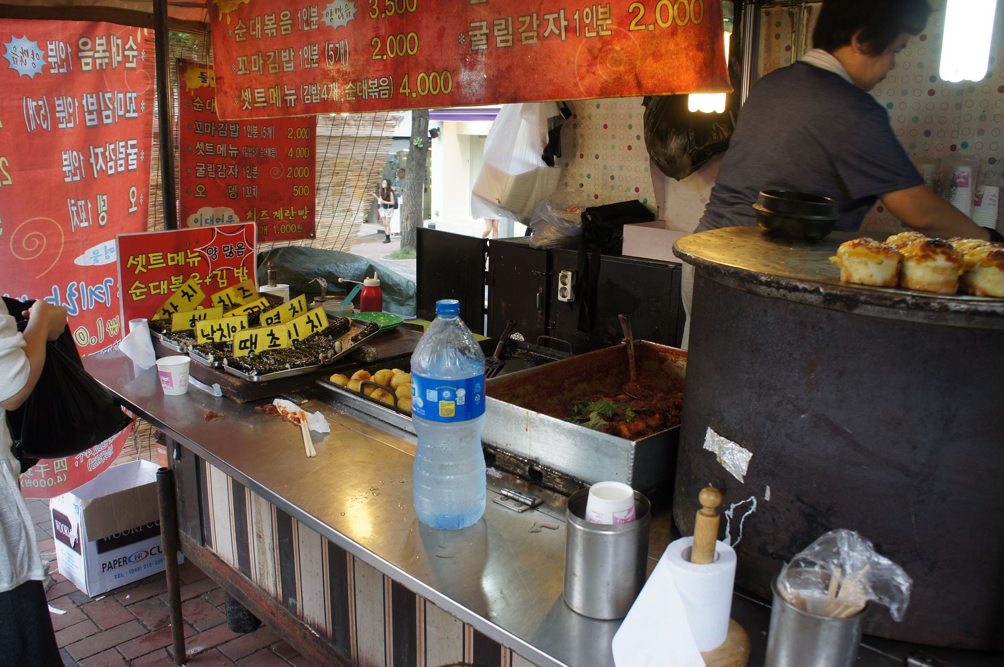 Food stalls with street food near Ewha Womans University