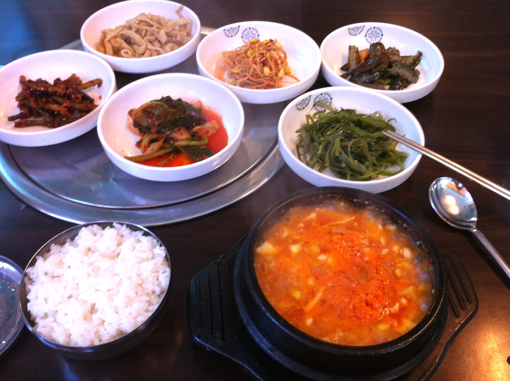 But still my first lunch was one of my favourite Korean dishes: Soondubu jjigae - spicy soft tofu stew. Since the Japanese food is not spicy at all I was happy eating some Kimchi back in Seoul. Some of you might think I am already „koreanized“ haha. I guess I am. I like to put some rice on a spoon. The rice is very sticky so it sticks on the spoon and then you can dip it into the jjigae where the the soup and the tofu will stay on the spoon. This is sooo good. 😋
