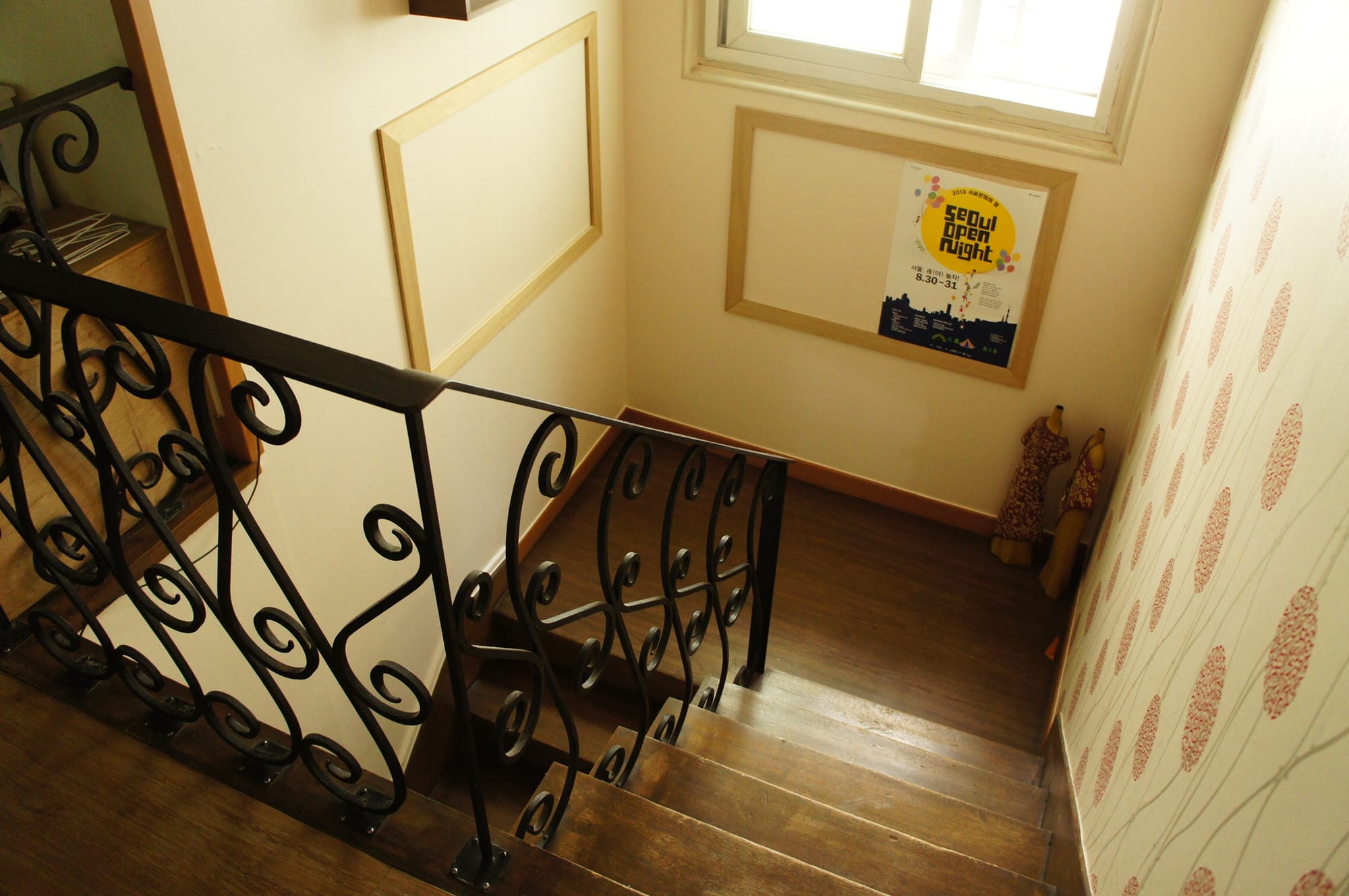In Seoul you can find several guesthouses. Many young travelers like to live here since the prices for a room are very cheap. My room costs converted into Euros about 17€/night. Although the room is really small it is okay to stay there for some days. Actually I spend most of the time at the wooden padio. The bathroom is shared with other guests and there is also a laundry room and a kitchen where you can cook.