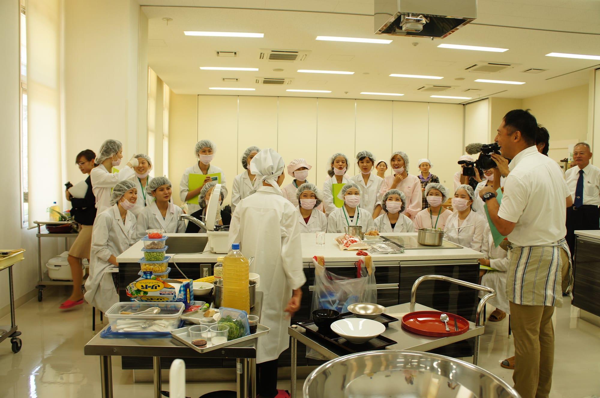 After that we would have a cooking lecture with a very famous japanese cook Sachiko Murakami and as we have been told some days before she is accompanied by a filmteam who were making a popular cooking TV show. So as you can imagine we all dressed up and put make up on for this occasion.