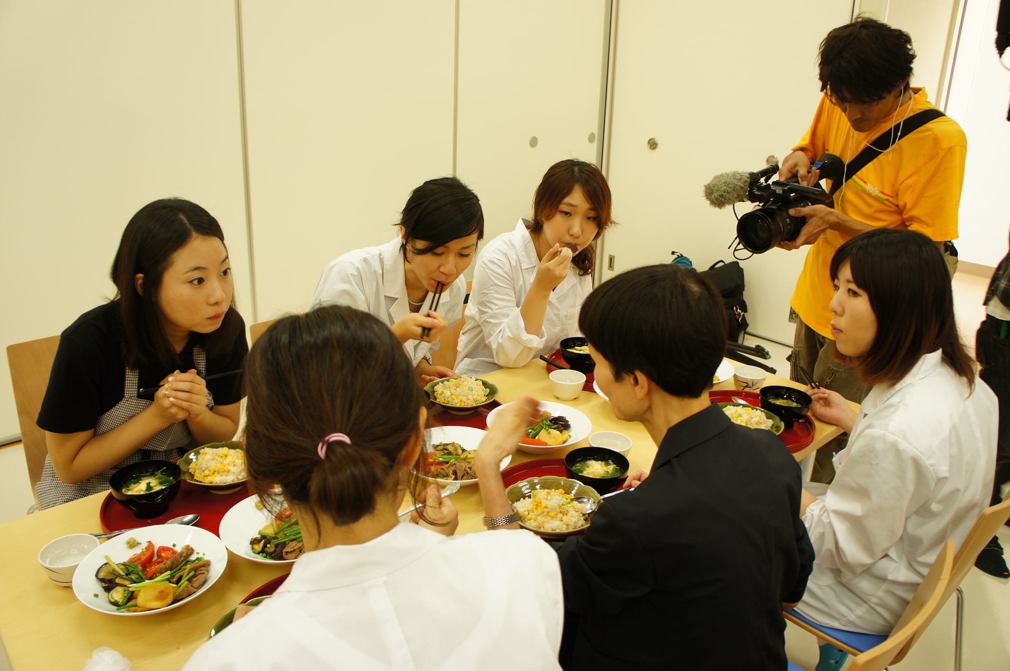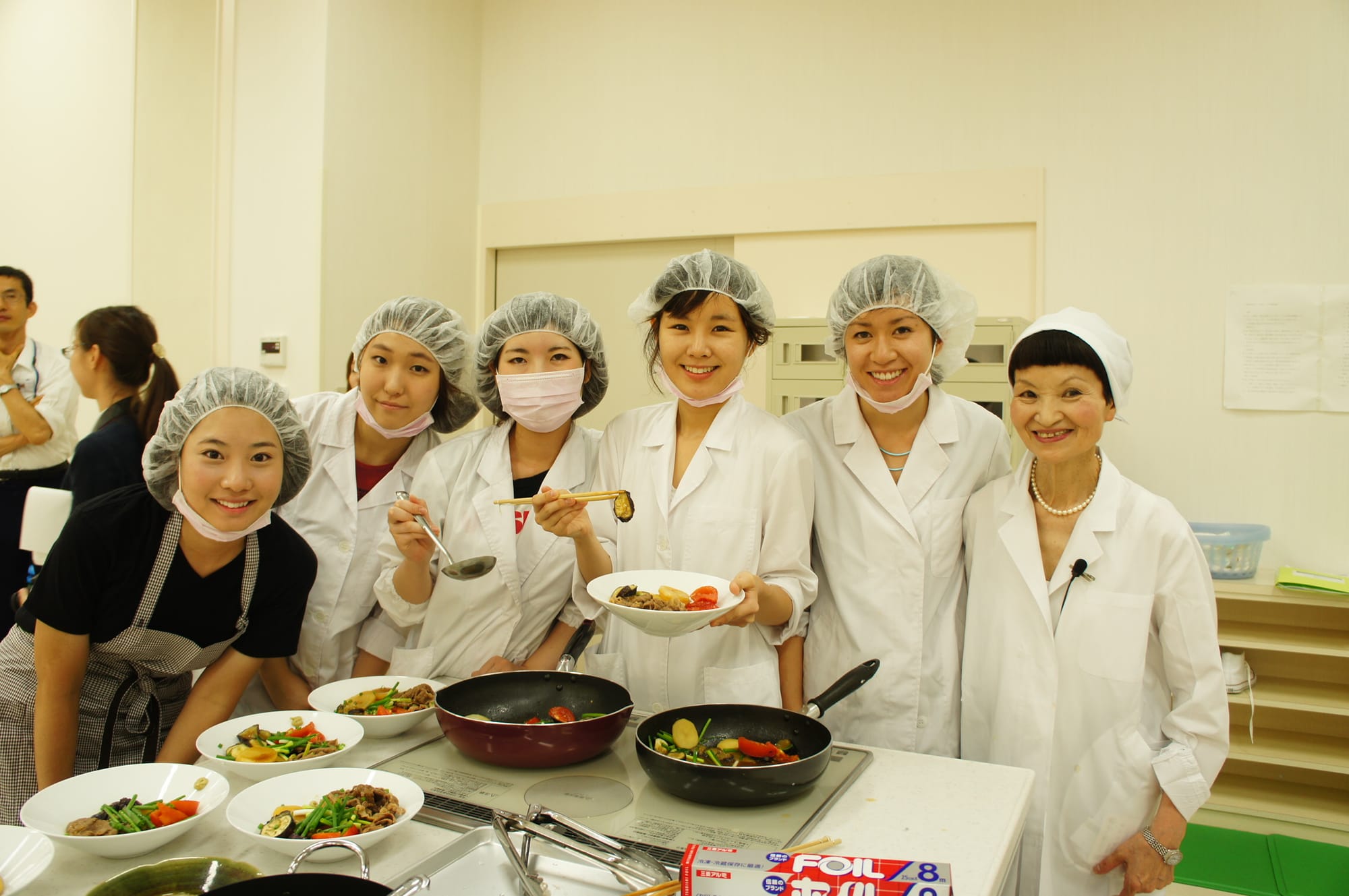 The cook who was invited, Sachiko Murakami, is a Japanese gourmet sensation and mastermind behind the recipes of this event. She has appeared in numerous TV shows and magazine articles. She is a registered dietitian, culinary professional, lecturer, author and teacher with 250 cookbooks which have sold with over 6 million copies. As I have mentioned before the girls were very excited about the TV crew and made a little bit more effort to dress up than usual. The funny thing is that we actually did not have to dress up.