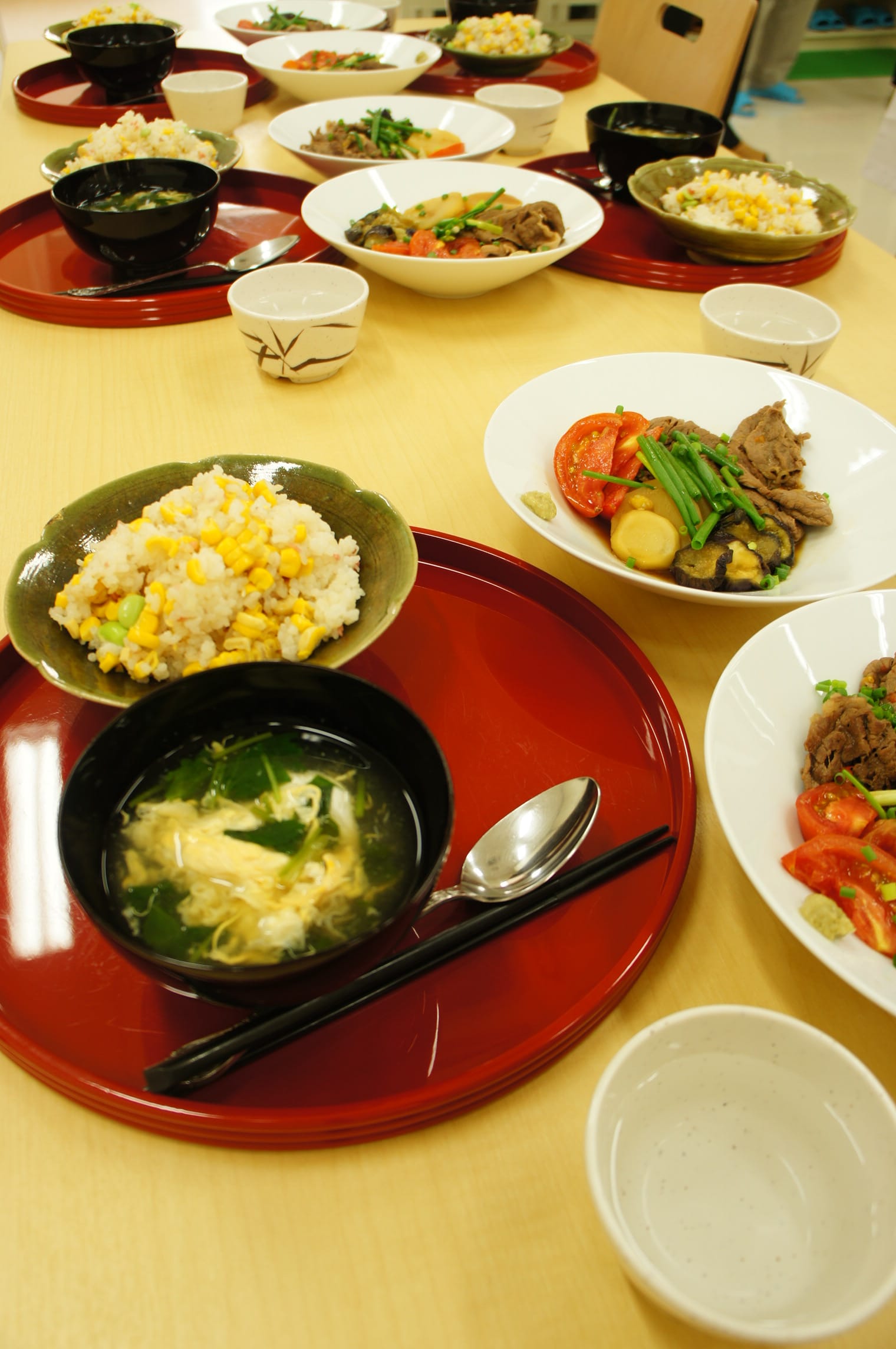 So anyways, we prepared the Dashi to cook the meal which consisted of Kakitamajiru (egg drop soup), Takikomi Gohan (rice cooked in Dashi, corn and green soybeans) and Summer Sukiyaki.