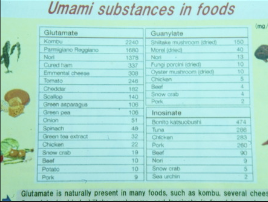 - reduce of total Na (salt) intake in our meal as the umami taste increases the salty taste.