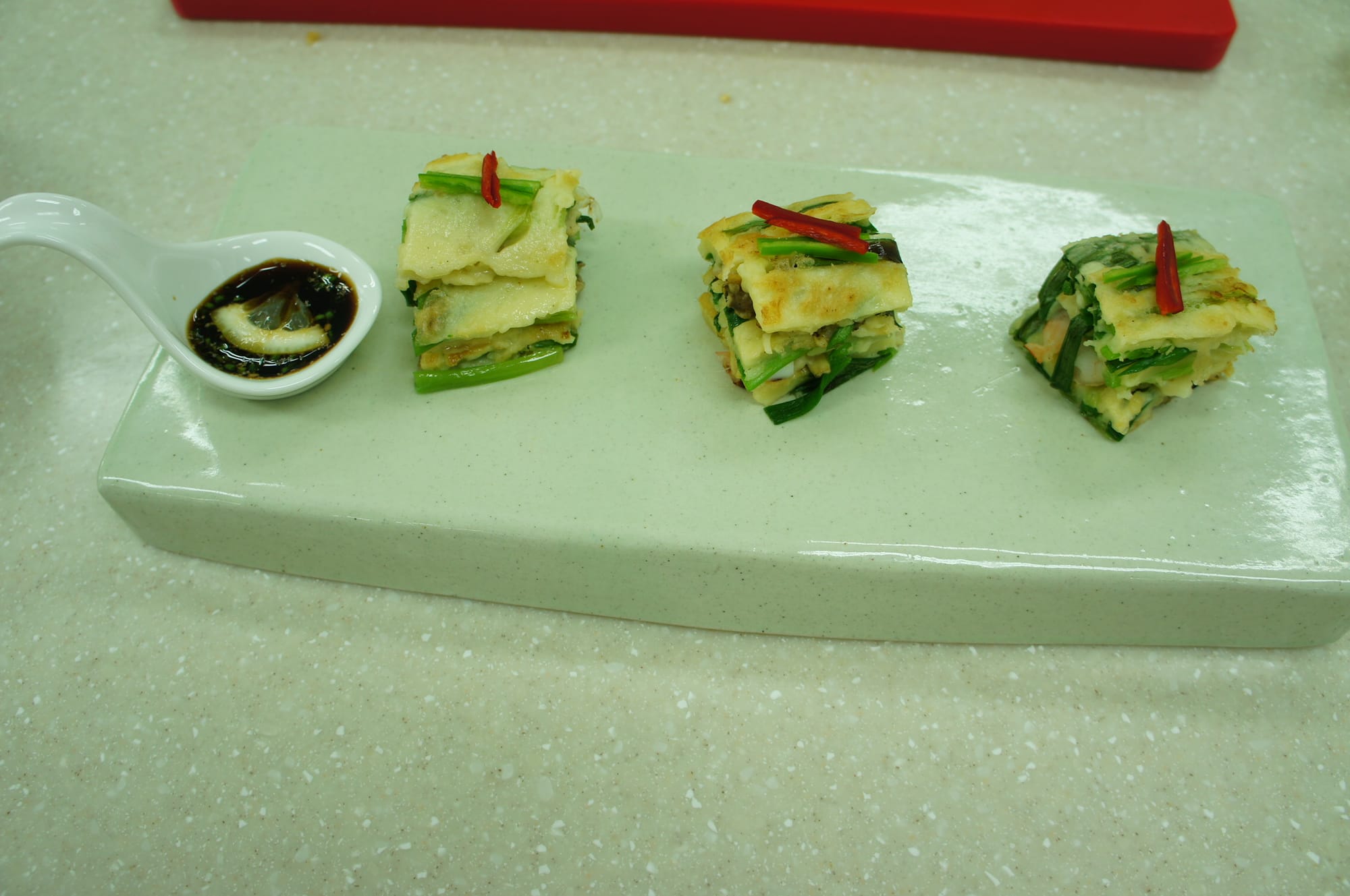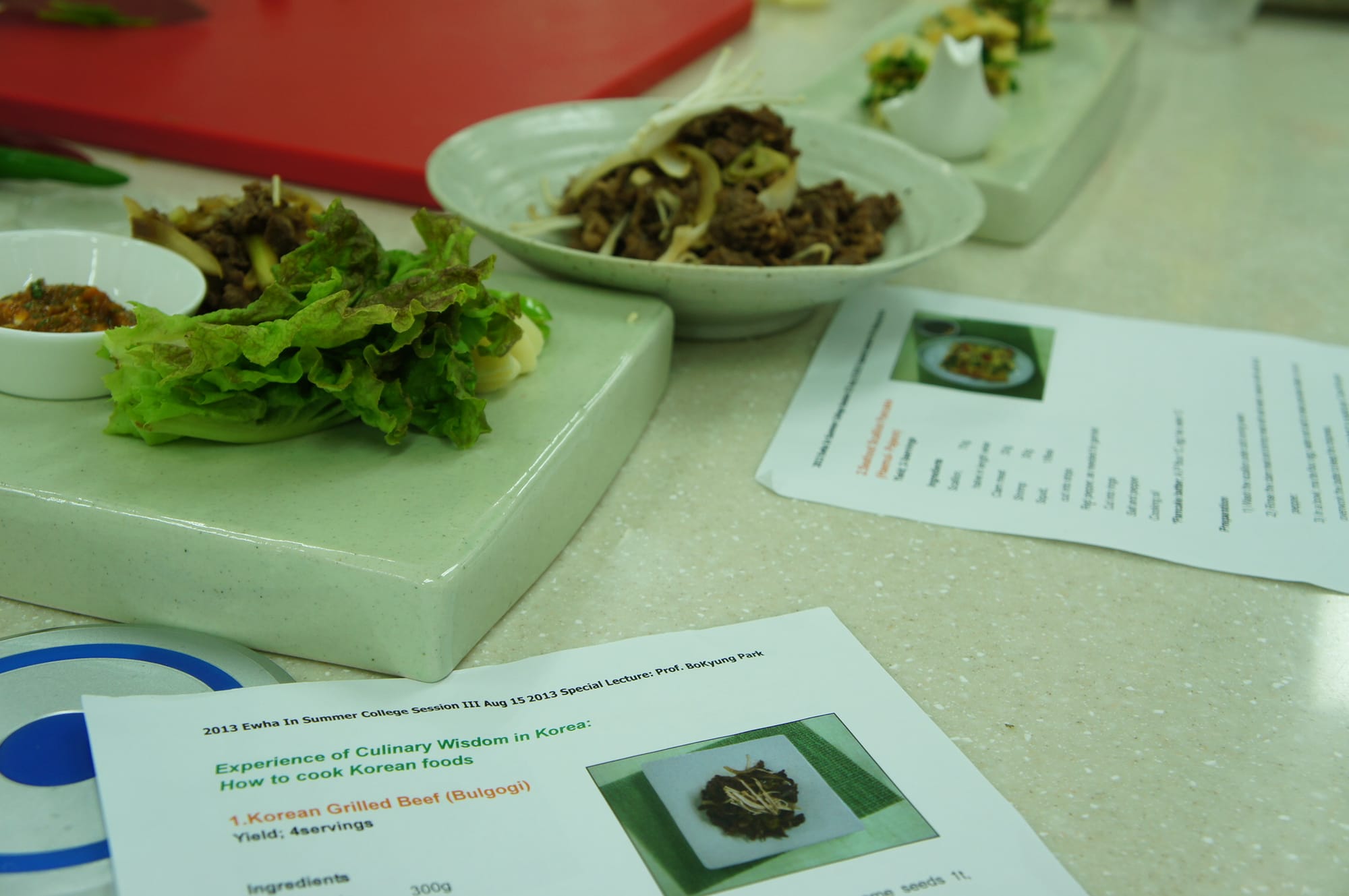 After lunch we had the last lecture which was the second studio-type and was about cooking traditional Korean food: Bulgogi and Haemul Pajoen. These are really also one of my favourite dishes that are not too difficult to make.