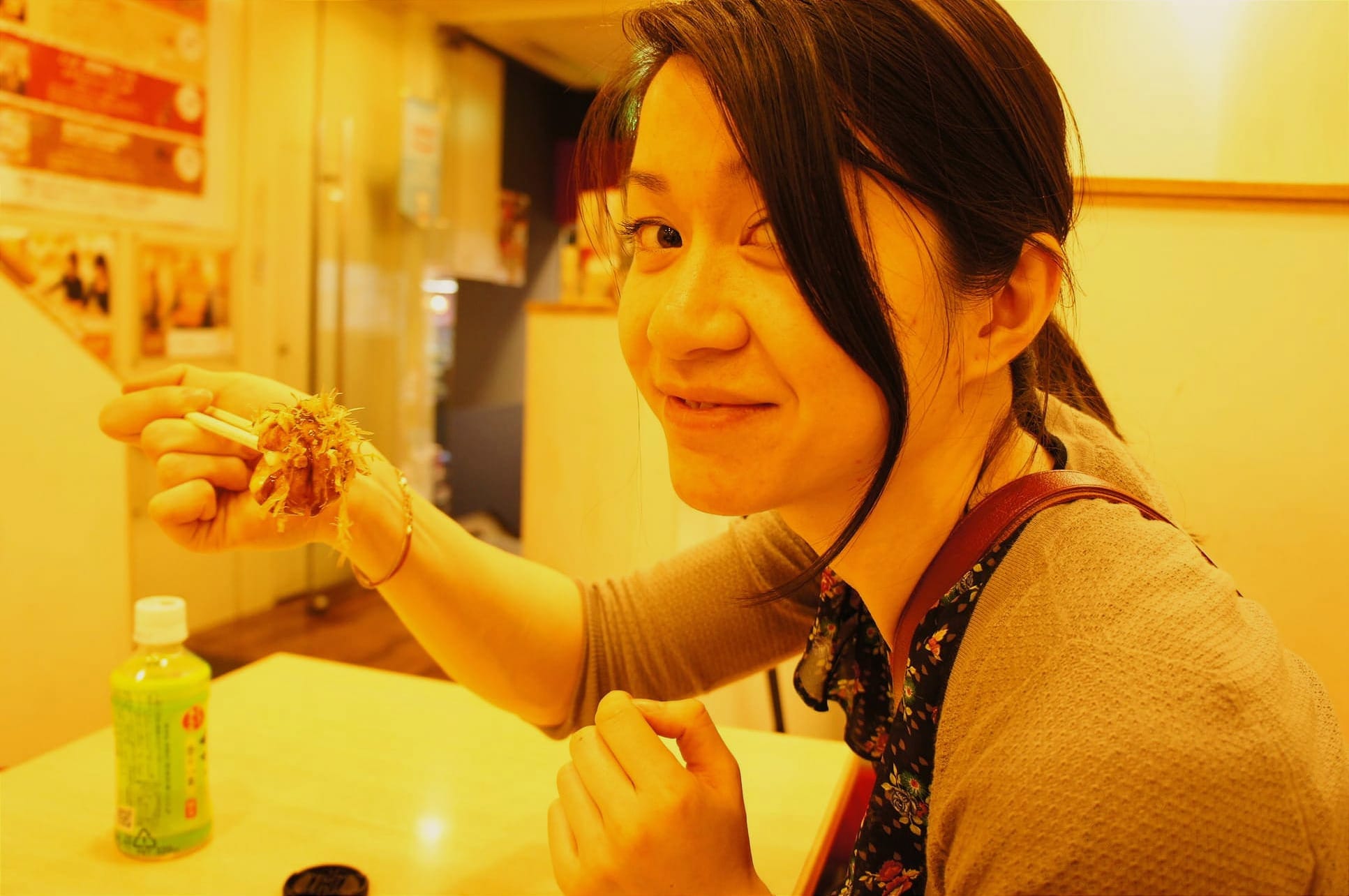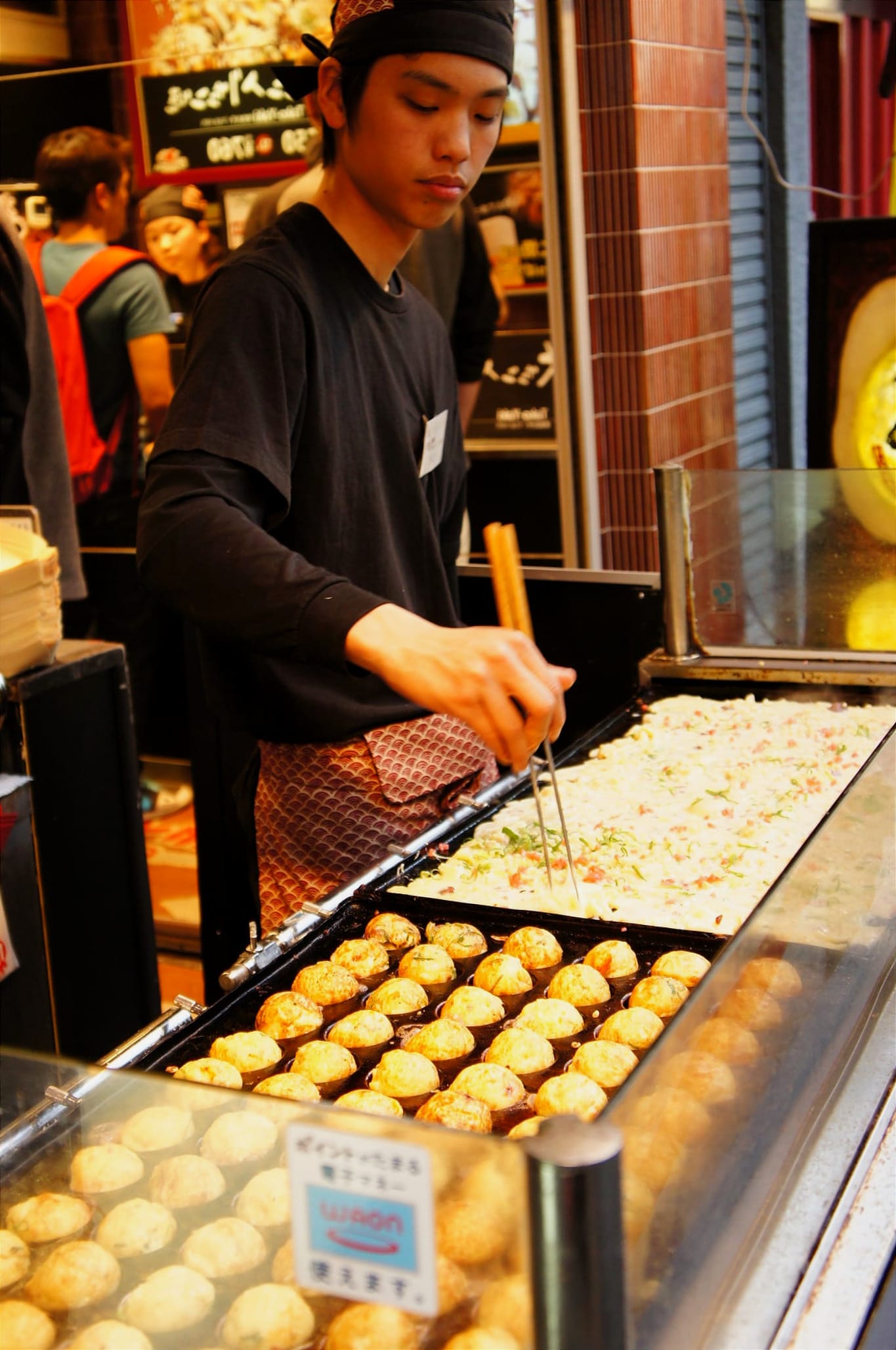 On our last day we went to have diner at an Okonomiyaki and Yakisoba place. This was a typical place for the two dishes where the chef cooks your food in front of you on the large frying places and serves your food directly in front of you on a frying plate. It's called Teppanyaki and is very entertaining and delicious. You should definitely try it when visiting Osaka! 😄