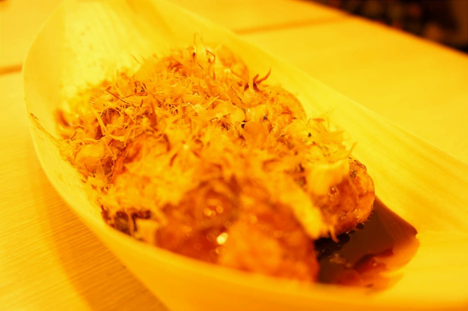 Takoyaki is mostly eaten as a snack. These are small wheat flour balls with cabbage, octopus topped with mayonnaise, okonomiyaki sauce, dried bonito flakes and seaweed powder. They are real small taste bombs. 😋