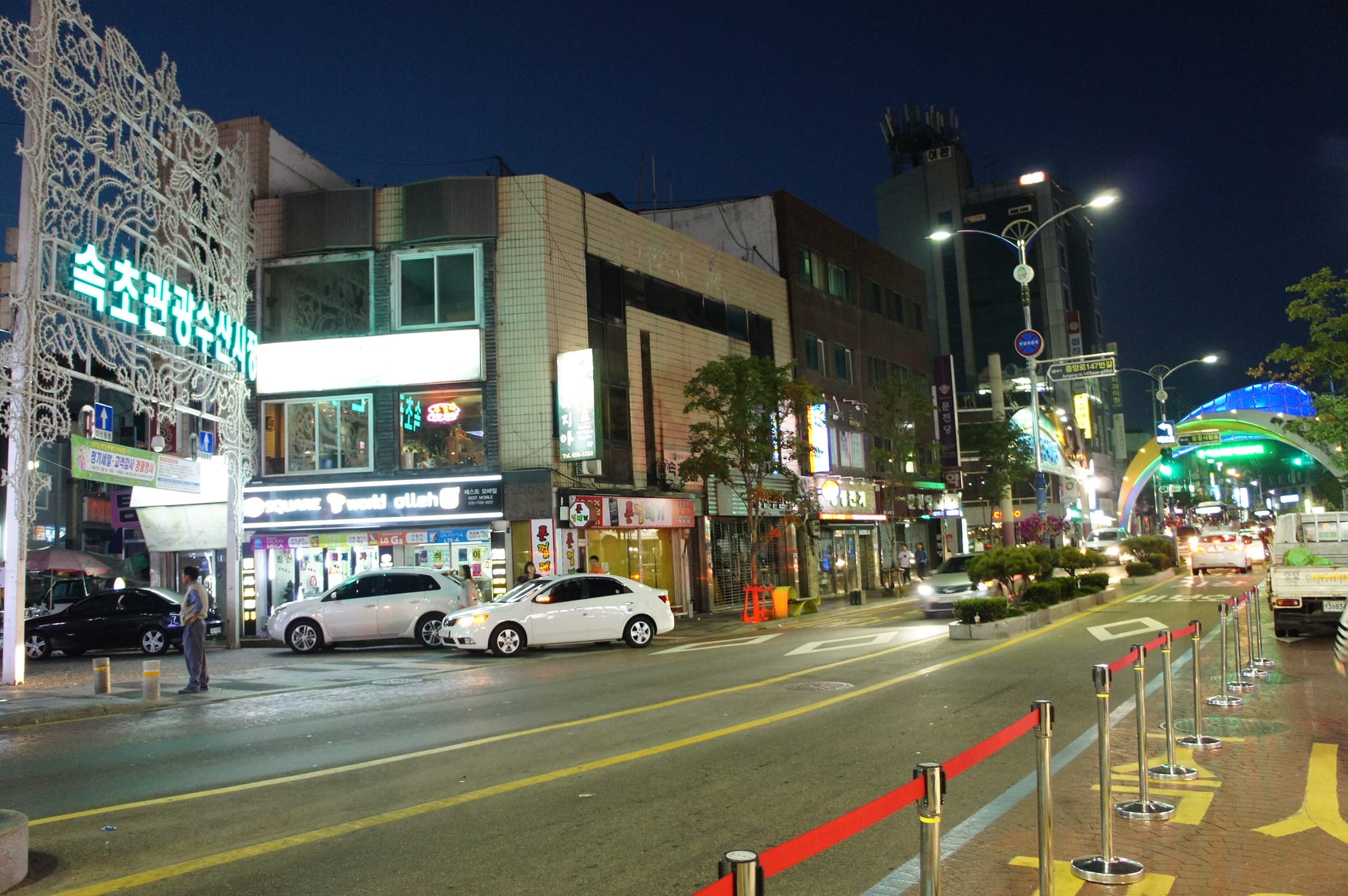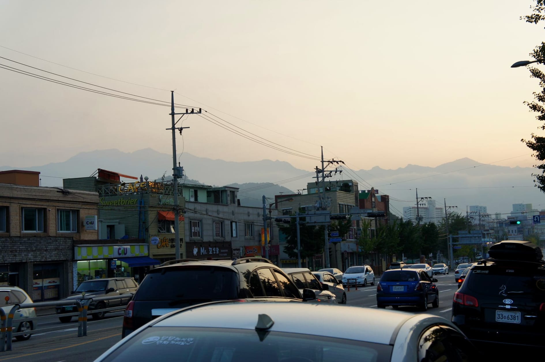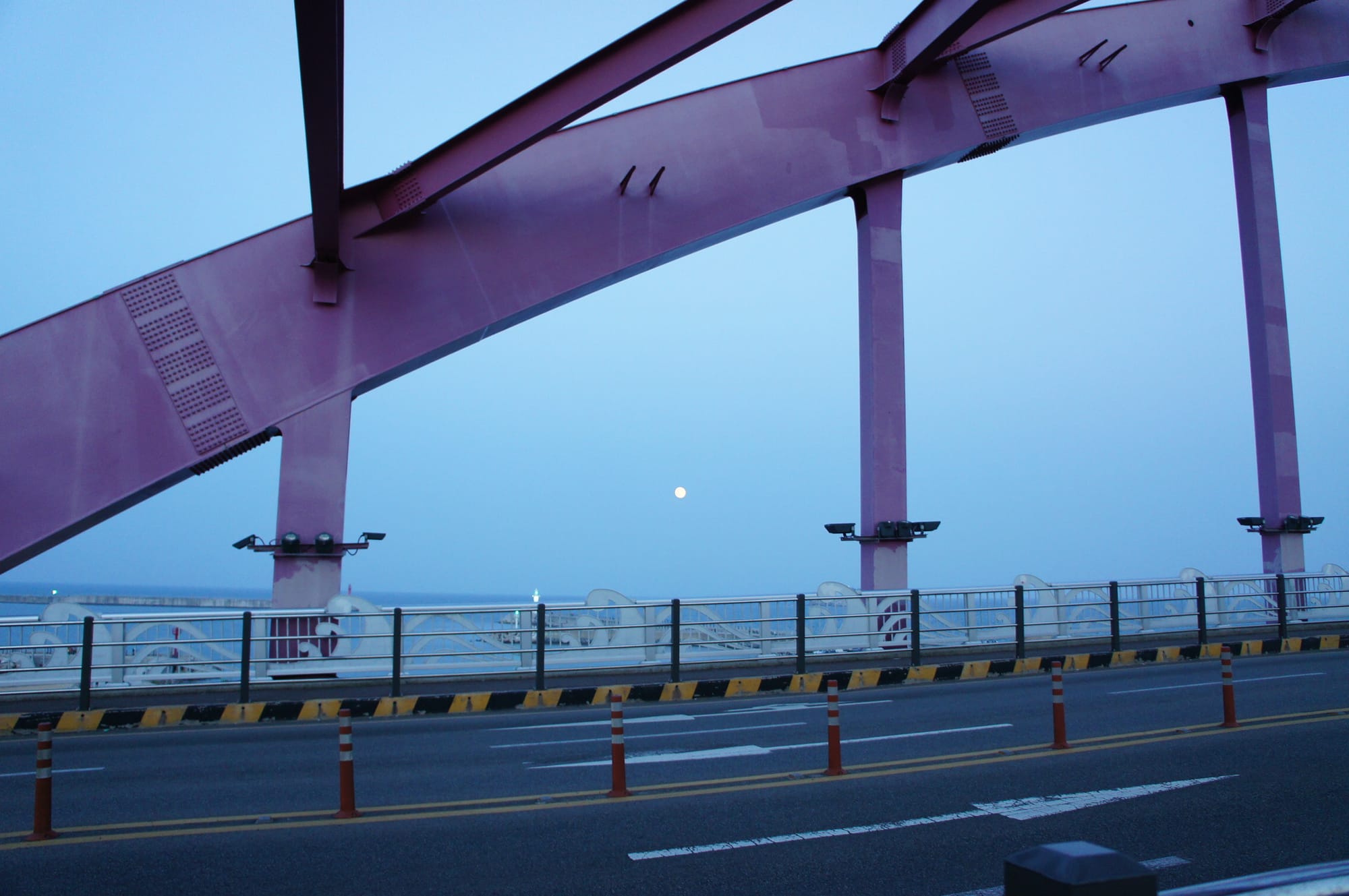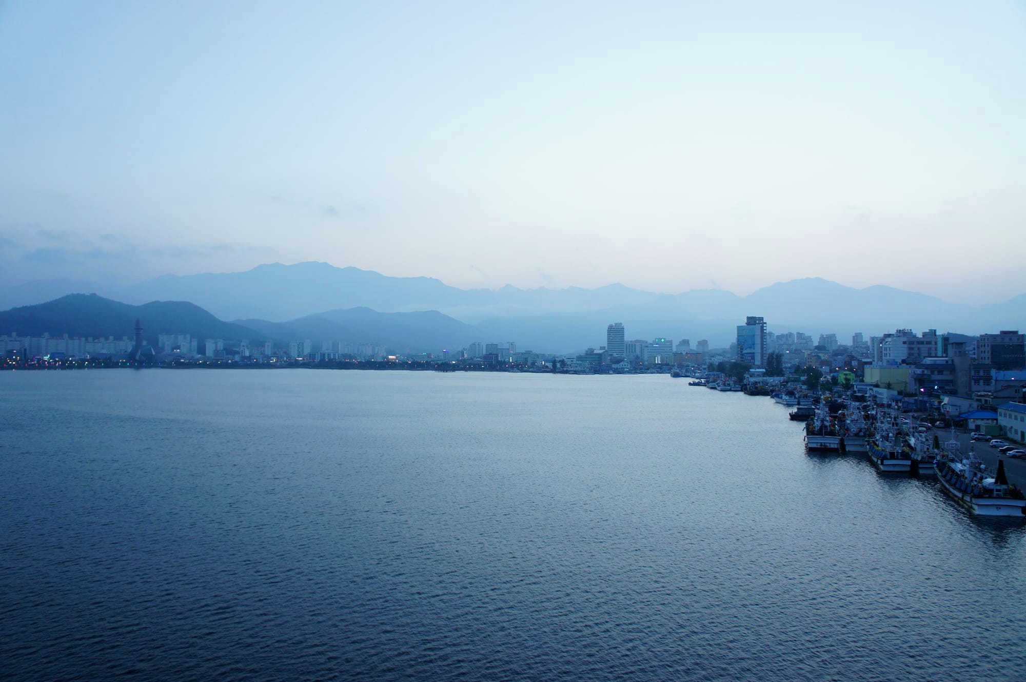 On our way we always saw the outlines of the mountains at the skyline of the city. We passed Seorak-daegyo Bridge and had a very special view on the pretty Cheongchoho Lake that was dyed in a very pretty, special and almost magical sunset light in the mix of blue, yellow and purple.