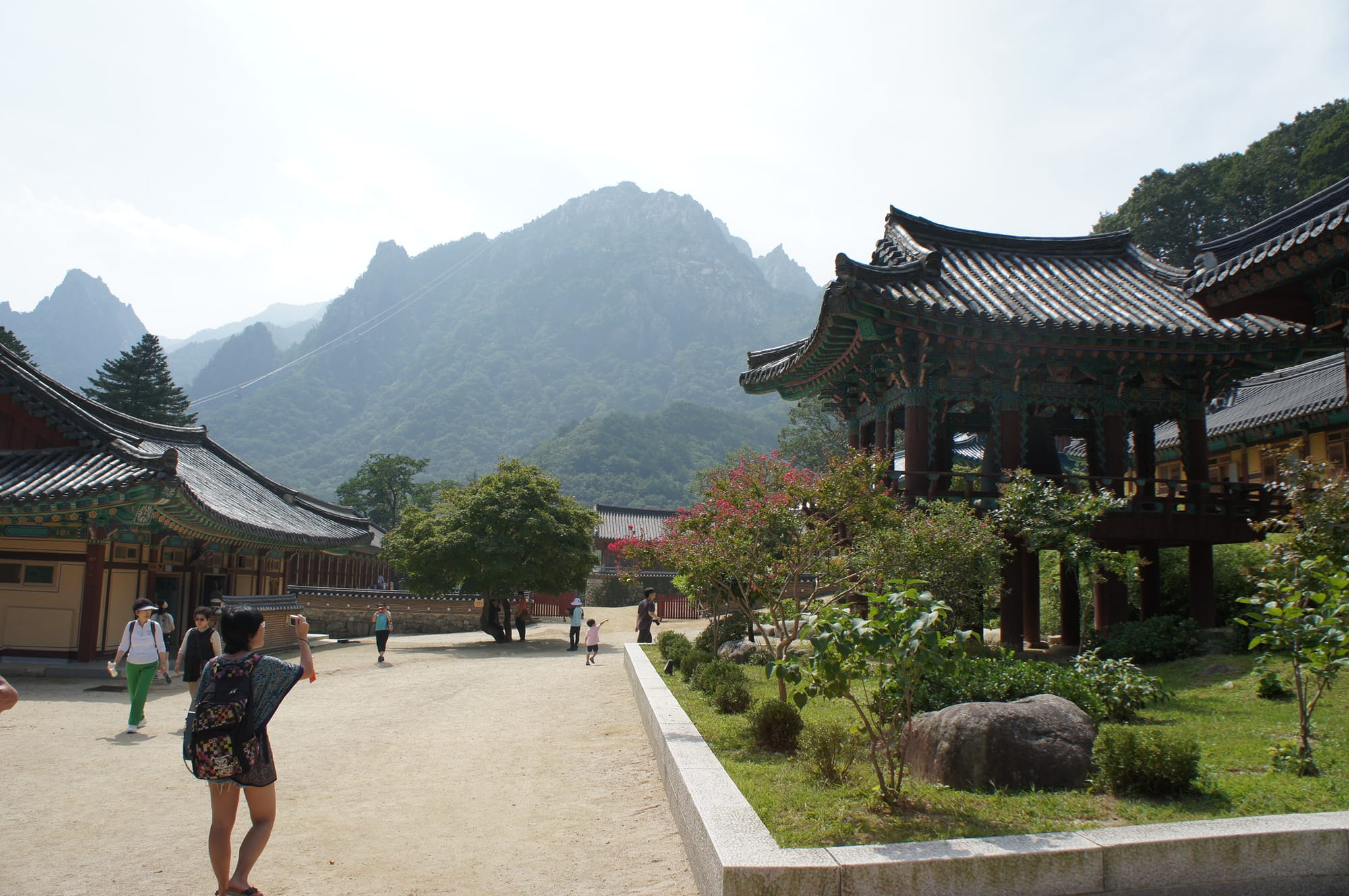 After our breakfast we checked out on the next morning and went to the Nationalpark to see the mountains. Well, one thing we should have suspected was that maybe ALL Koreans and tourists might have the same idea as Seoraksan Nationalpark is a famous hiking place especially during holidays so ... it was veeery crowded. Anyways we walked around and visited the Temple. It was after all a beautiful landscape sight.