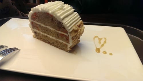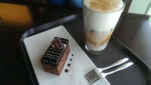 Up left to right: Grain Milkshake, Caffe Latte and Carrot Cake. Down left to right: Dark Chocolate Cake with Iced Cappucino and Choco Milkshake.